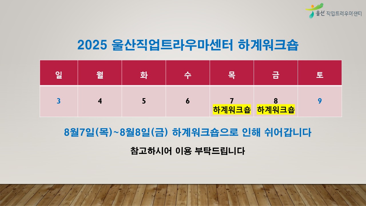 [휴무공지]2025년 울산직업트라우마센터 하계워크숍 공지